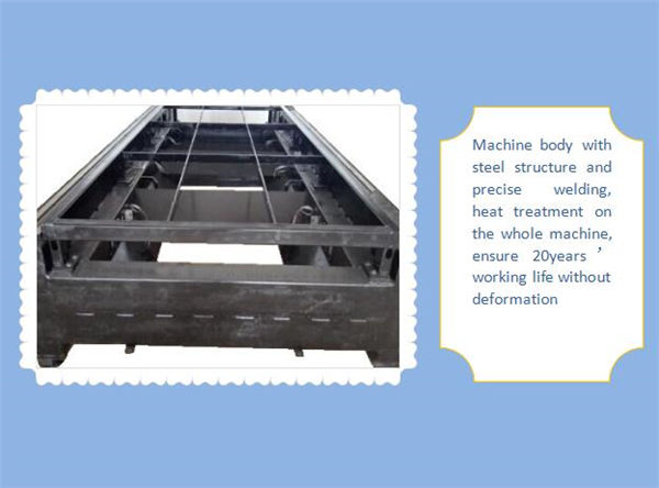 1. Нашето машинско тело со челична конструкција од 8мм, термичка обработка од 600,, прецизно заварување, за да се осигураме 20 години употреба без деформација.